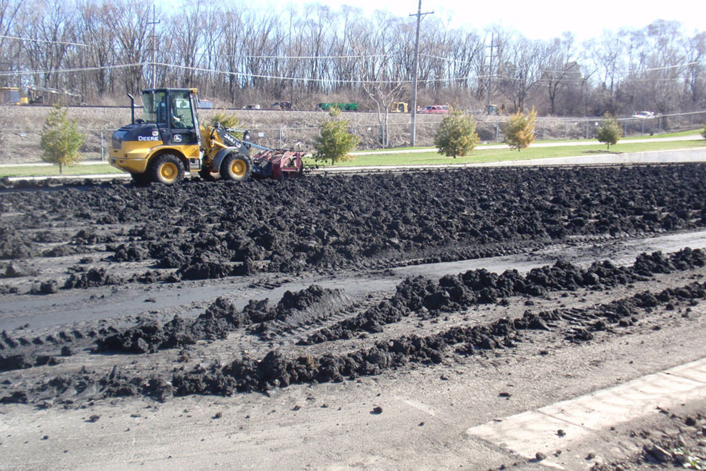 This visual example of biosolids can help you decide how much you will need for your landscape project.