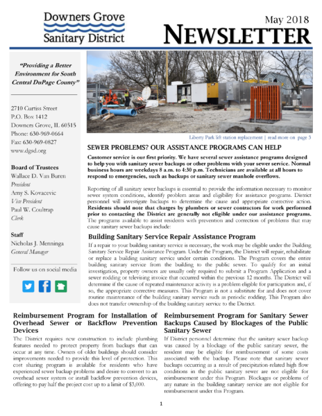 Our 2018 newsletter is now available! Read about updates on the District’s current activities, programs and more.