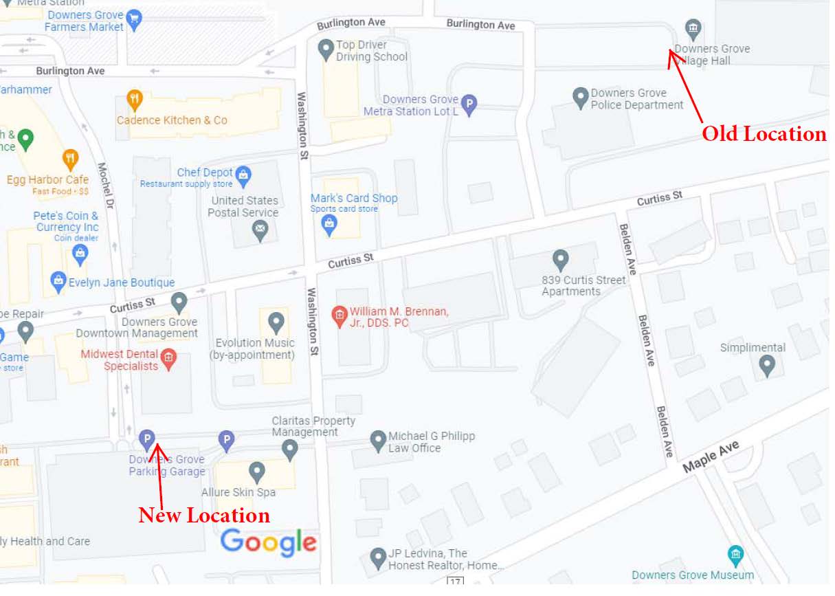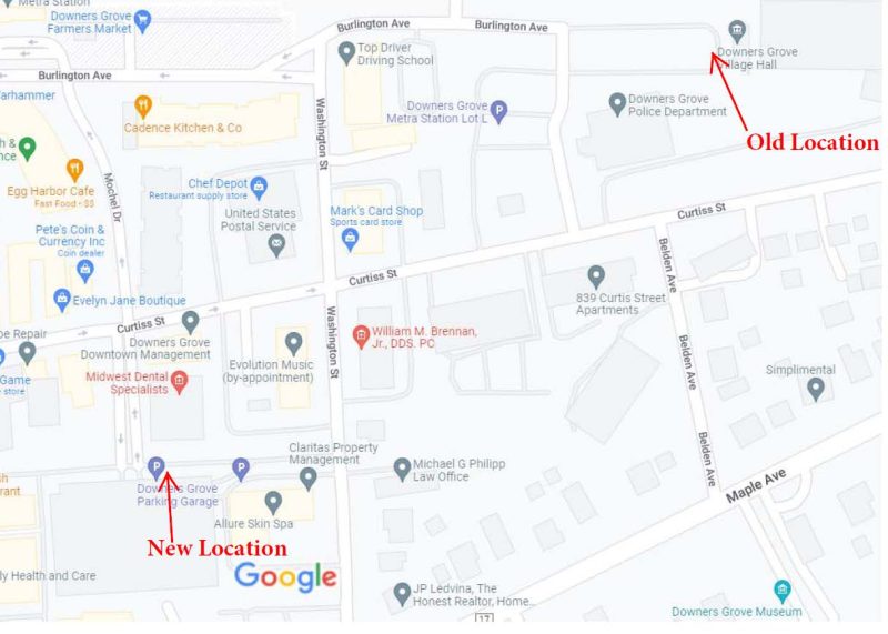 The District payment drop box located at the Downers Grove Village Hall has temporarily moved to a new location during their construction, effective Thursday, August 11, 2022. The new location is in front of the parking garage located at 5155 Mochel Dr. in Downers Grove. To access this drop box, you will need to enter the drive from Washington St. If you turn on Mochel Dr. you will not be able to turn left to access the drop box as it is a one way. Please see the map and pictures below to help you find the location.